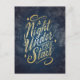 A Night Under the Stars Postcard Invitation featuring elegant handlettered typography of “A Night Under the Stars”. This design includes elements of dark blue, gold and a starry night background.