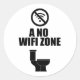 A no wifi icon with the text "A no wifi zone" over a toilet.