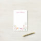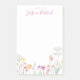 Beautiful personalised post it notes with a custom name printed in a lovely cursive script. The sticky notes are decorated with a pretty watercolor style illustration of colourful wild flowers. The top of the design features two lines of custom text, the first one in a lighter small print and a pretty magenta script. Great for teachers and anyone who wants to add a touch of beauty into their business communication.