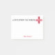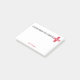 A Note From the School Nurse Red First Aid Cross Personalised Small Post it Notes. Text reads: A Note From The School Nurse with a red first aid cross in corner. Personalise with name in red. Fun personalised gift for a school nurse. www.SamAnnDesigns.com