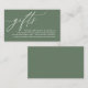 Celebrate the beginning of your journey together with our elegantly crafted "gifts" wedding invitation enclosed card in forest sage green greenery theme. Featuring a sophisticated blend of modern script and romantic allure, each card is meticulously designed to convey the essence of your special day. Perfectly suited for couples seeking a unique way to share their honeymoon dreams, this card invites your loved ones to contribute towards unforgettable experiences. Whether nestled in a luxurious envelope or presented alongside your wedding invitations, our card adds a touch of enchantment to your celebration, promising cherished memories that last a lifetime. Designed by TeeshaDerrick.