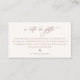 A note on gifts, wedding enclosure card. Elegant burnt sienna colour typography on sandy beige and sienna colour backgrounds with doodle heart accent.