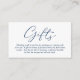 Celebrate the beginning of your journey together with our elegantly navy blue crafted "gifts" wedding invitation enclosed card. Featuring a sophisticated blend of modern script and romantic allure, each card is meticulously designed to convey the essence of your special day. Perfectly suited for couples seeking a unique way to share their honeymoon dreams, this card invites your loved ones to contribute towards unforgettable experiences. Whether nestled in a luxurious envelope or presented alongside your wedding invitations, our card adds a touch of enchantment to your celebration, promising cherished memories that last a lifetime. Designed by TeeshaDerrick.