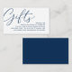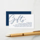 Celebrate the beginning of your journey together with our elegantly navy blue crafted "gifts" wedding invitation enclosed card. Featuring a sophisticated blend of modern script and romantic allure, each card is meticulously designed to convey the essence of your special day. Perfectly suited for couples seeking a unique way to share their honeymoon dreams, this card invites your loved ones to contribute towards unforgettable experiences. Whether nestled in a luxurious envelope or presented alongside your wedding invitations, our card adds a touch of enchantment to your celebration, promising cherished memories that last a lifetime. Designed by TeeshaDerrick.
