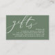 Celebrate the beginning of your journey together with our elegantly classy greenery forest sage green crafted "gifts" wedding invitation enclosed card. Featuring a sophisticated blend of modern script and romantic allure, each card is meticulously designed to convey the essence of your special day. Perfectly suited for couples seeking a unique way to share their honeymoon dreams, this card invites your loved ones to contribute towards unforgettable experiences. Whether nestled in a luxurious envelope or presented alongside your wedding invitations, our card adds a touch of enchantment to your celebration, promising cherished memories that last a lifetime. Designed by TeeshaDerrick.