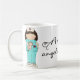 This mug features a cute graphic of a female nurse with hearts in her pocket and holding a teddy bear. The phrase states, " A nurse is an angel in comfy shoes." Shown on the basic white mug but would be nice on any of them and easily customised.