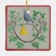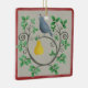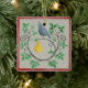 Celebrate the 12 Days of Christmas with this hand painted ornament of a partridge in a pear tree and hand lettered, “The First day of Christmas on the back. 2.87” round, this this watercolor porcelain ornament adds a touch of whimsy to a special gift or hung on a tree. One of a set of twelve scenes illustrating the traditional carol, The 12 Days of Christmas.