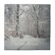 Embrace the beauty of winter with our charming ceramic tile depicting a snowy forest scene. The white snow-covered trees, winding trail, and frosted landscape create a peaceful and inviting atmosphere. This decorative piece is ideal for adding a touch of seasonal flair to your home decor or would make a thoughtful gift for anyone who appreciates rustic charm.