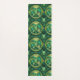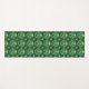 A pattern of intricate, green and gold circular yoga mat
