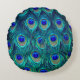 A Peacocks Beautiful Opened Feathers Round Cushion