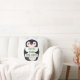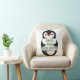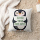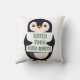 A penguin holding a sign with customizable text th cushion