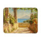 The painting shows a sunny terrace in Capri with flowers and limestone columns. In the background you can see the Vesuvius volcano.