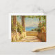 The painting shows a sunny terrace in Capri with flowers and limestone columns. In the background you can see the Vesuvius volcano.