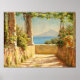 The painting shows a sunny terrace in Capri with flowers and limestone columns. In the background you can see the Vesuvius volcano.