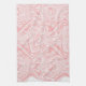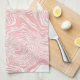 a pink and white abstract design on a white backgr tea towel