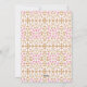 The design features a repeating pattern with floral and geometric elements. The main components include stylised flowers with eight petals, circular shapes that resemble smaller flowers or dots, and interconnected looping lines forming a lattice-like structure. The colour scheme includes shades of pink, white, and brown on a beige background. This symmetrical and harmonious design is ideal for decorative purposes such as wallpaper or textiles.