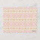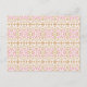The design features a repeating pattern with floral and geometric elements. The main components include stylised flowers with eight petals, circular shapes that resemble smaller flowers or dots, and interconnected looping lines forming a lattice-like structure. The colour scheme includes shades of pink, white, and brown on a beige background. This symmetrical and harmonious design is ideal for decorative purposes such as wallpaper or textiles.
