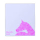 Personalise this pink Arabian horse head notepad with your name in pink on a light blue background. Based on my original wavy lines drawing, this hot pink pony has a swirly movement that this design creates.