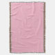 A pink woven blanket with a subtle pattern is shown in two orientations. It features fringed edges, conveying a cozy and warm feel.