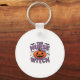 A playful design featuring a pumpkin witch with a key ring