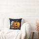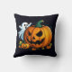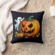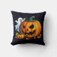 A whimsical ghost floats beside a jack-o'-lantern, embodying the spirit of Halloween with vibrant pumpkins and autumn leaves set against a dark backdrop.
