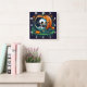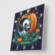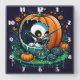 A playful ghost emerges from a Halloween pumpkin Square Wall Clock