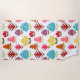 This beach towel has a mid-century modern design of flowers made from squares, ovals, and diamonds that have been manipulated to form flowers.