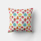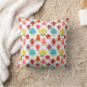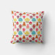 This throw pillow has a mid-century modern design of flowers made from squares, ovals, and diamonds that have been manipulated to form flowers.