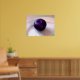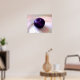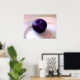 A purple plum, a ripe plum, a shiny plum is the subject of this original photograph by ZoeSPEAK. We see the round fruit as it sits on the curves of a white plate, throwing its oval shadow in pastel colors across the dish which sits on a textured pastel background. This closeup photo of a plum shows off the plum's curves around the top with a highlight in a light cobalt blue color. Almost taking center stage on the light background, this richly dark colored plum is the star of the show, delicious! Spread out across the bottom of the plum photo print, there is black text which reads "PLUM". This is set to personalize or delete as you wish. Enjoy the beauty of fresh fruit anytime with this poster.