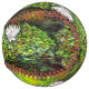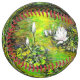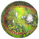 Original painting of a lush pond filled with water lily plants and vibrant foliage. The vivid colors and intricate details create a lively, natural setting. Painted by New York City, Fine Arts Artist, Gaye Elise Beda.