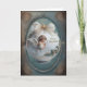 This greeting card features a vintage-style illustration of a serene angel, hands clasped in prayer, robed in flowing white and crowned with a celestial ribbon of gold and ivory. Framed in ornate filigree and nestled among pine branches and winter berries, she stands against a soft teal sky—an emblem of peace and divine presence. The words “Merry Christmas” shimmer like a whispered blessing, inviting the recipient into a moment of reflection and warmth. Perfect for sending heartfelt wishes, this card carries the spirit of quiet devotion and the gentle magic of the season.
