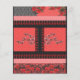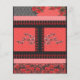 a red and black pattern with flowers on it flyer