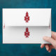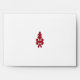 a red and blue pattern on a white background envelope