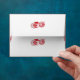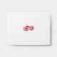 a red and white drawing of a flower envelope