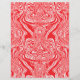 The design features a symmetrical, abstract pattern with intricate details. The design is predominantly red with black accents and has a kaleidoscopic effect due to its mirrored symmetry on both vertical and horizontal axes. The swirling shapes resemble floral or paisley elements, giving it an organic feel. It looks like it could be a tapestry or curtain, hanging from the top.