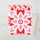 a red and white pattern with a flower on it