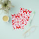 a red and white pattern with a flower on it flyer
