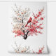 Pretty pink floral cherry blossom trees with a cardinal sitting on it's branches.