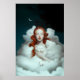 A Red Haired Woman Holding a Cat In The Clouds Poster