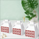 A red rug with a textured pattern is spread out on favour box