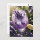 AI generated art of some lavender lemonade from a viewpoint of above the with lavender fronds and a lemon slice on the table