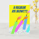 A Regular Joe Blow??? Not you! You made it in the Hall of Flame! Happy Blowday! funny birthday greeting card with bright flaming and slanted candles on a frosted and sprinkled cake. Bright and colourful design. Art, image, and verse copyright © Shoaff Ballanger Studios, 2022.