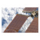 A repaired solar array on the International Space Station featured with Earth.