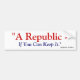 A Republic If You Can Keep It - Benjamin Franklin Bumper Sticker
