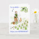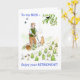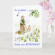 A Retirement Good Wishes card for a boss, with a man enjoying listening to the birdsong whilst tending the vegetable patch. The cat looks on and butterflies have come out in the sunshine, from a watercolour painting by Judy Adamson. The inside is left blank for your own message.