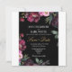 A floral bouquet of rich, dramatic, and moody peony design. This save-the-date design is bold and dramatic, adding more than a touch of glamor to any wedding celebration. Deep, moody florals evoke a romantic atmosphere against the night-black backdrop.