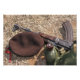 A rifle, military cover and canteen of a Mozambican soldier featured with firearms.