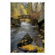 A river running through American Fork Canyon. Small wooden bridge. Autumn foliage, and fallen leaves.