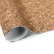 a roll of brown cork sheeting material with a textured surface, curled at one corner to reveal a grey underside, on a white background