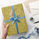 a roll of gold glitter wrapping paper partially unrolled to reveal its sparkly texture and rolled edge